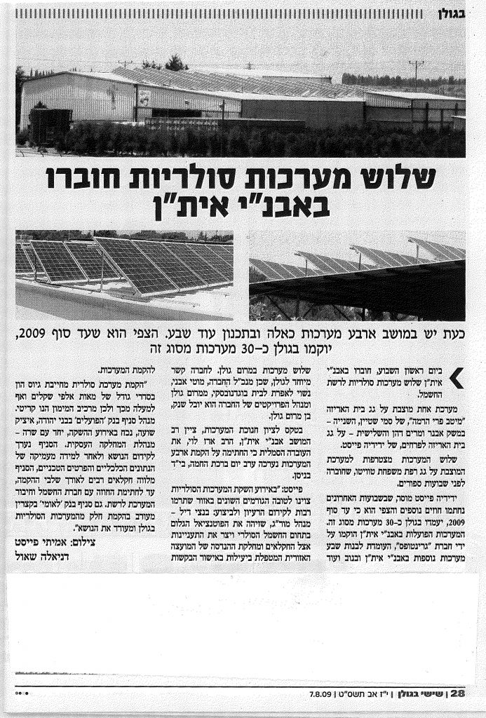 שישי בגולן 22/08/09 שלוש מערכות סולאריות חוברו