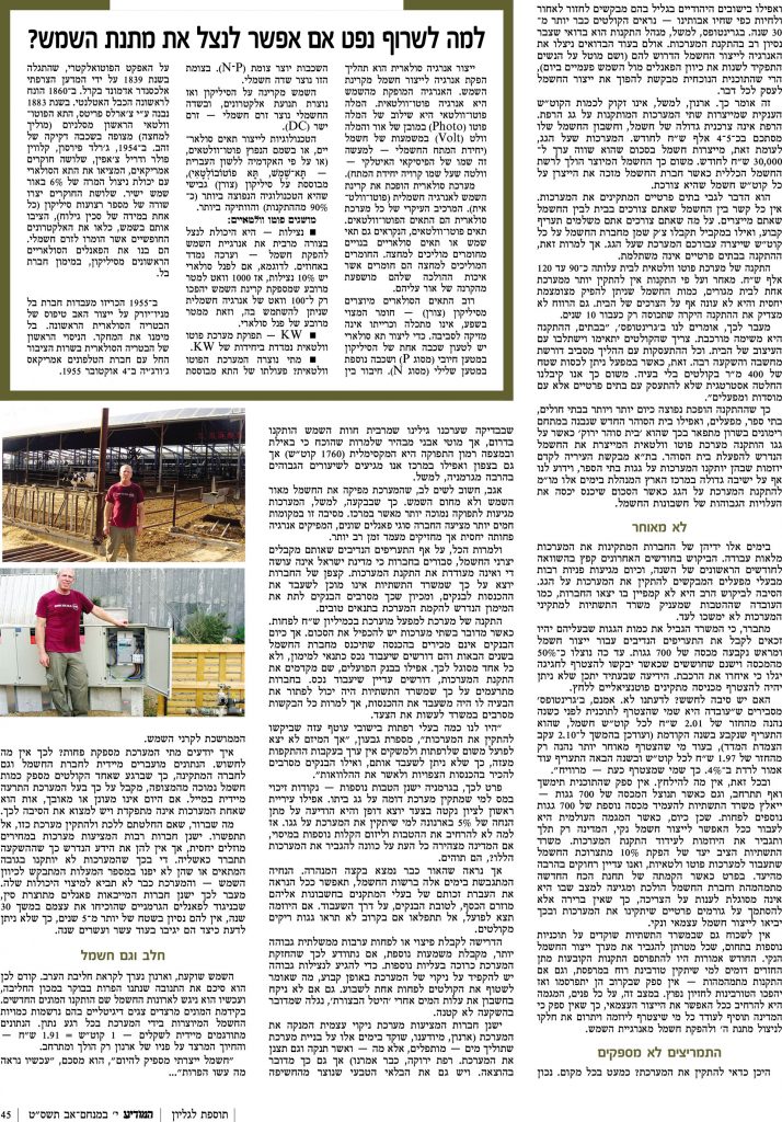 "כשהרפתות מייצרות חשמל" GreenTops במאמר בהמודיע